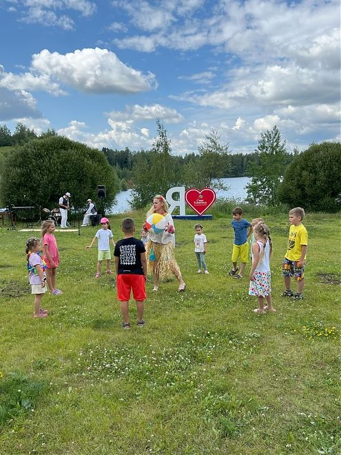 Играем в мяч на берегу в Спас-Каменке